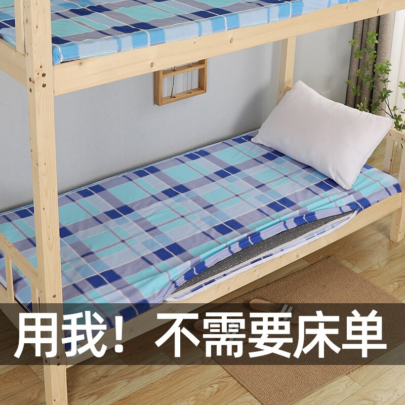 柳伊 双面全棉宿舍单人床垫套保护套100%纯棉斜纹床笠全包简约格子0.9米学生褥子罩床单拉链褥套 蓝绿格【纯棉斜纹床垫套】 100x200cm【预留缩水量】 自营