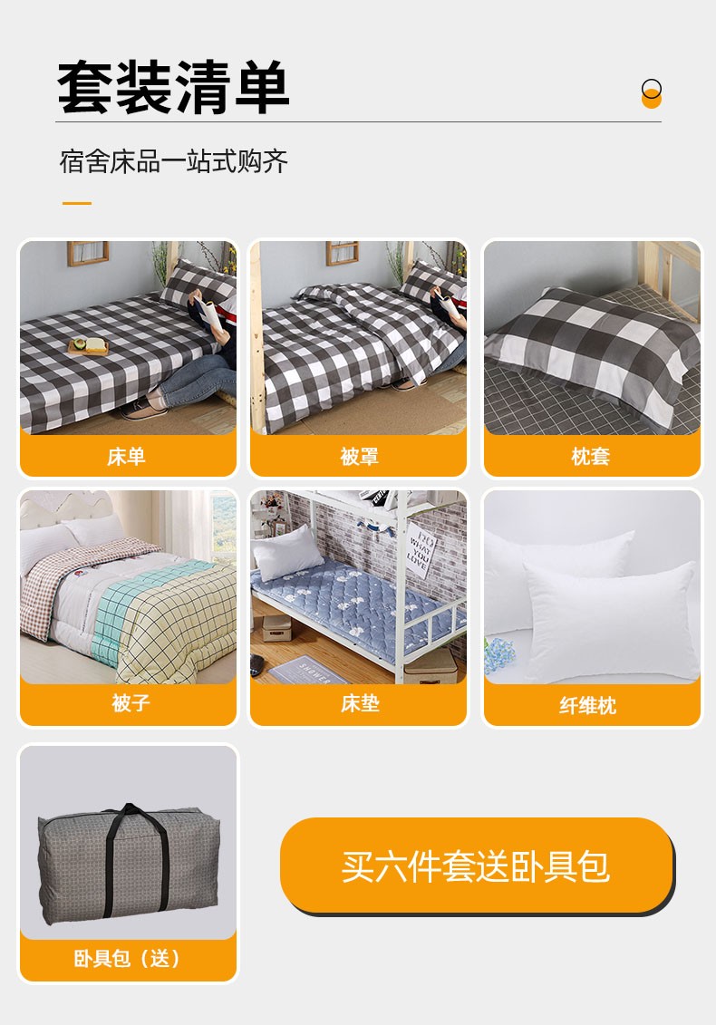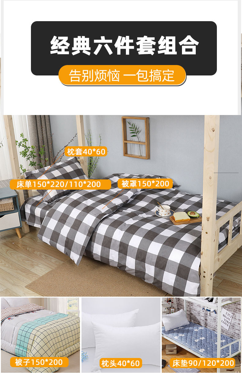 柳伊 宿舍被褥套装单人床 大学全套学校床上用品六三件套学生寝室上下铺床单被套床垫枕头春秋被子褥子一套 蓝白格 1.2m床 六件套【4斤春秋被】 自营