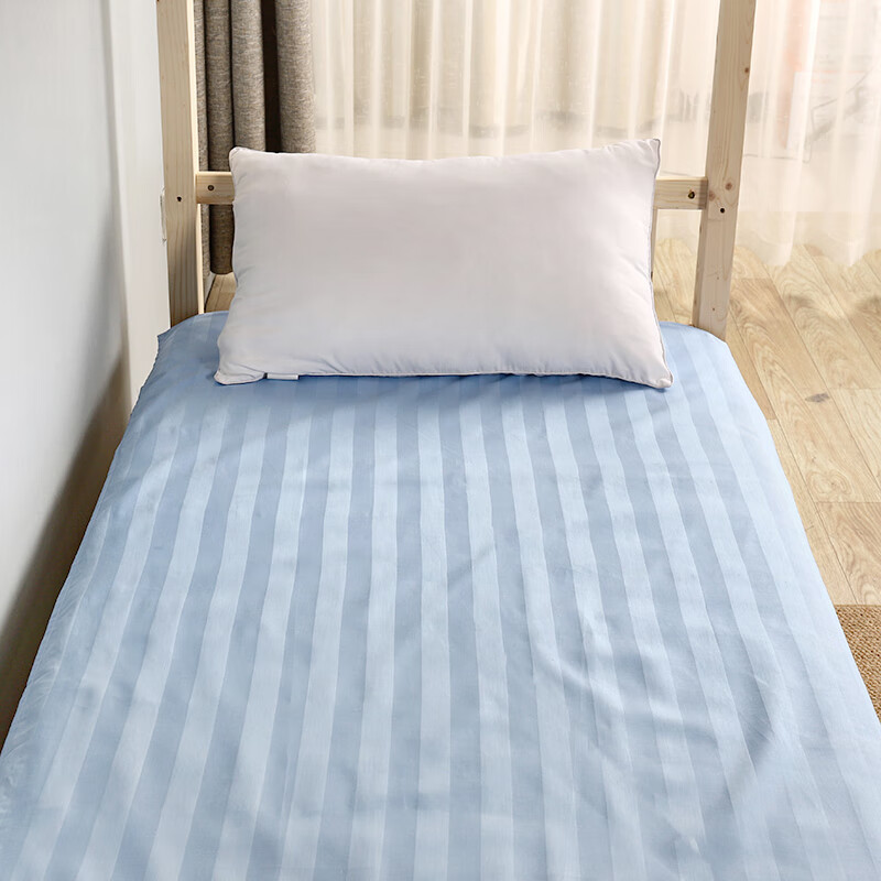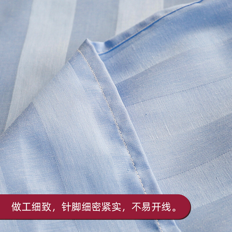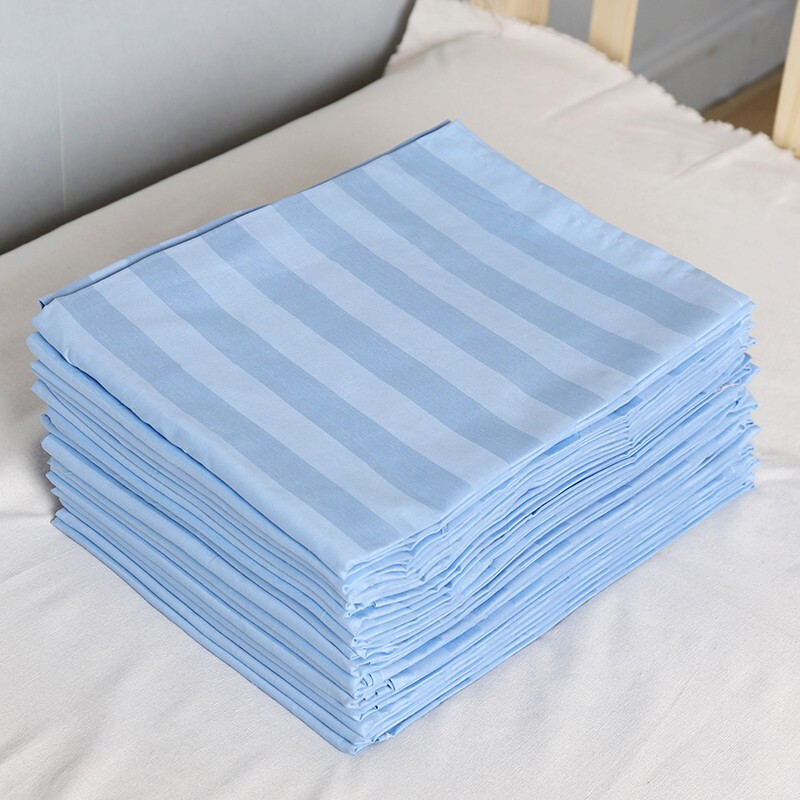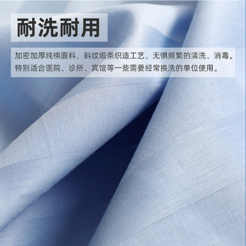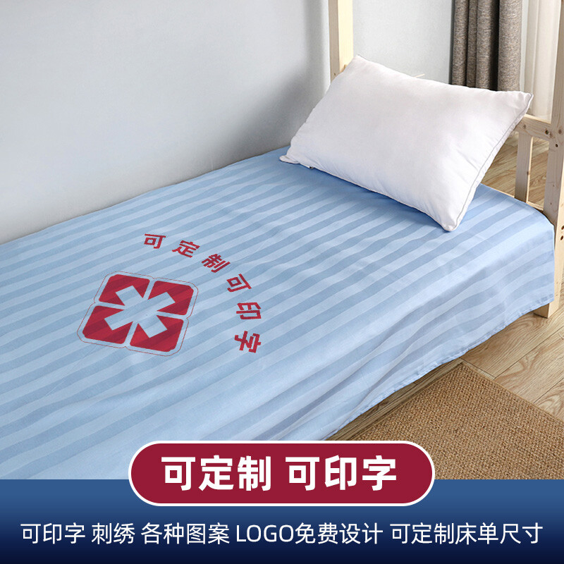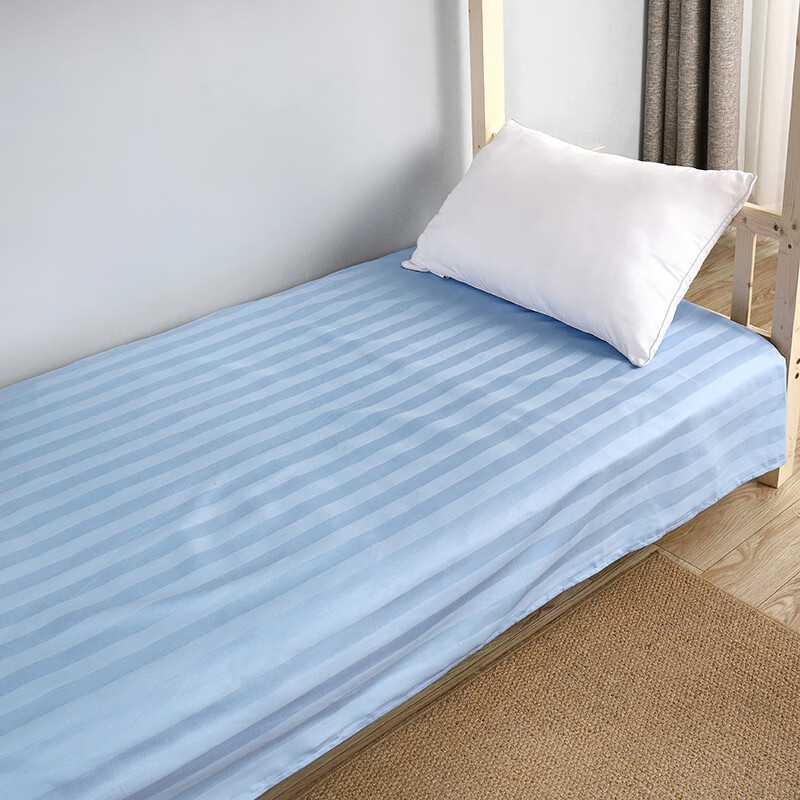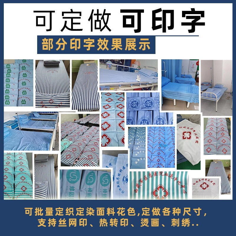 柳伊 蓝缎条床单棉医院诊所用加厚被单单件浅蓝色可印字定做宿舍单人床养老院卫生院病床医护床上用品 天蓝色【纯棉缎条】 0.9m床三件套(床单被套枕套) 自营
