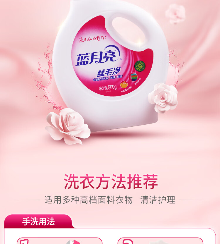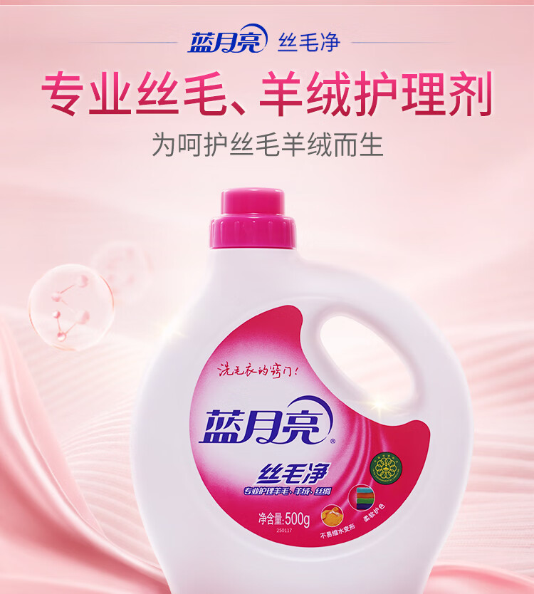 蓝月亮 丝毛净 羊毛衫洗涤剂 真丝羊毛洗衣液500g/瓶 专业呵护丝毛 护理纤维防损伤 自营