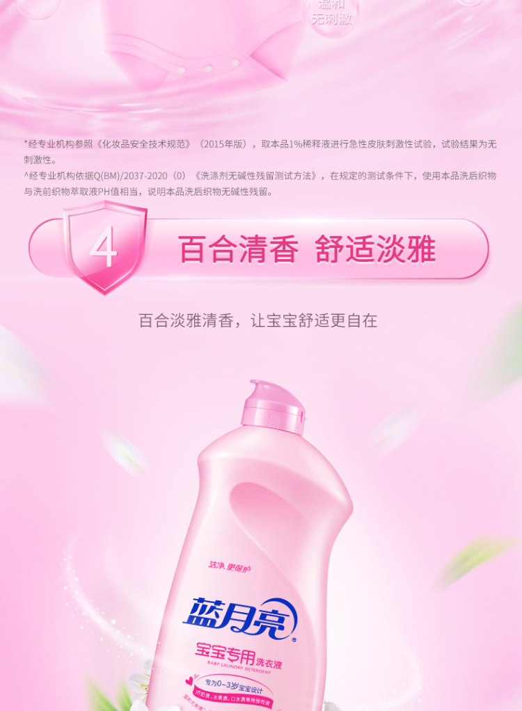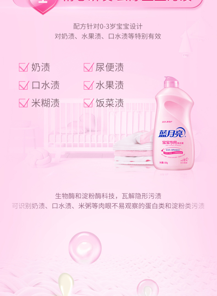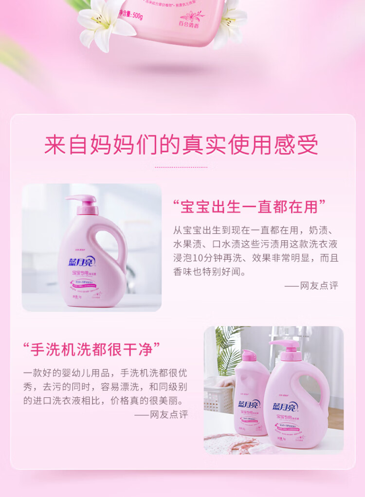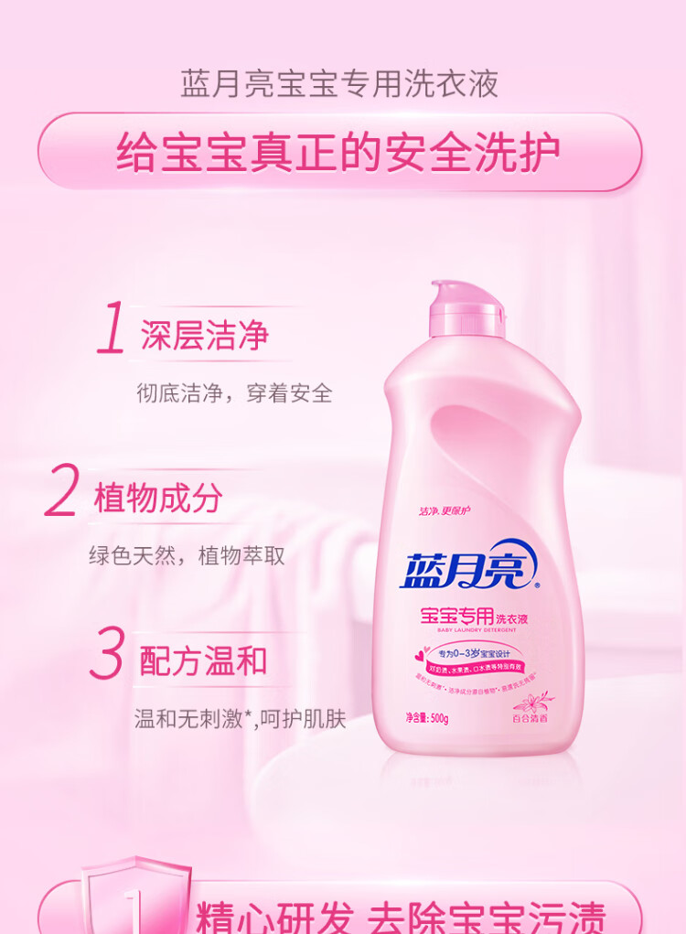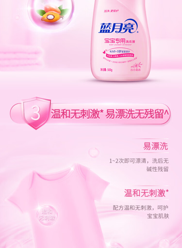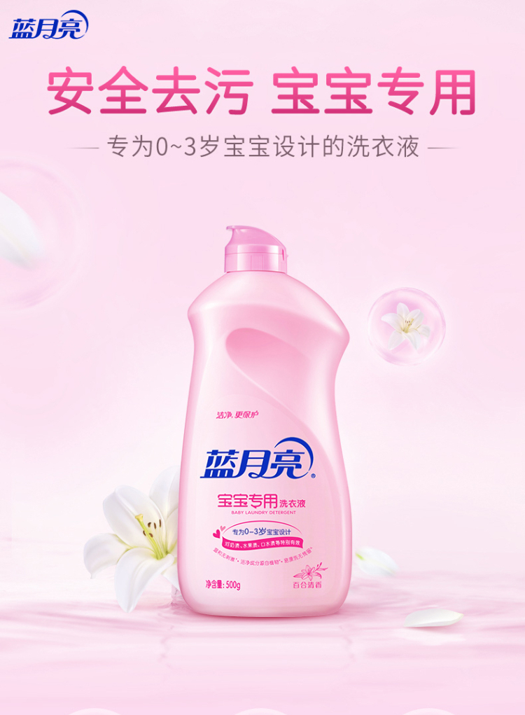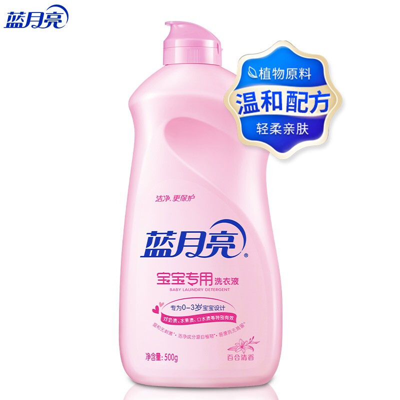 蓝月亮 宝宝婴儿专用洗衣液 儿童衣物清洁 天然亲肤 手洗机洗双用(百合清香) 500g/瓶 便携装 自营