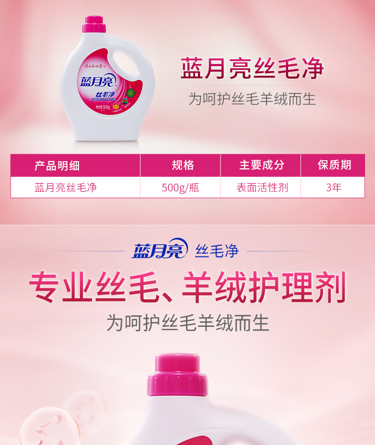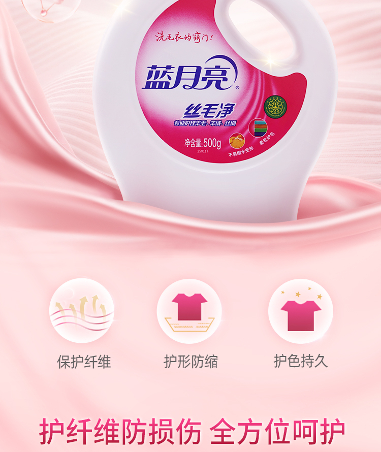 蓝月亮 丝毛净 羊毛衫洗涤剂 真丝羊毛洗衣液500g/瓶 专业呵护丝毛 护理纤维防损伤 自营